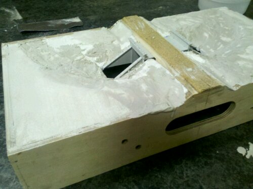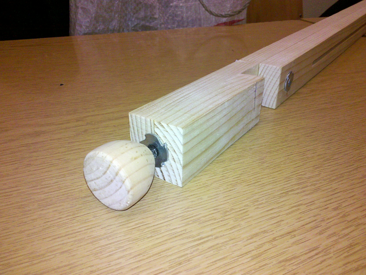 Rövid képes beszámoló a következő modul darabom lábbefogóinak elkészítéséről. Az szerkezet ötletét masTTertape modellezőtársamtól kaptam. Felhasznált anyagok: 2db 38mm hosszú hasáb 50×30-as fenyőlécből, 10mm rétegelt lemezből: 2db 50x95mm, 1db kb 40mm x 95mm, 2db tesauer csavar, 2db M6 fakötésű alátét, 1db csillag műanyag fogós M6x30 és 1db hatlapfejű M6x30, 35mm-es bognárszög, Palma Fa Expressz ragasztó.