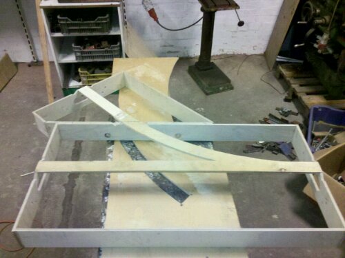 Ez esetben az ágyazatot két lépésben akarom elkészíteni, először a sínszálak közti részt majd a vezetékek forrasztása után a külső részt. Azért gondoltam erre, mert reményem szerint az félig kész ágyazat ragasztója rögzíti a vágányokat így már tűk eltávolíthatóak és könnyebben hozzá lehet férni mindenhez.