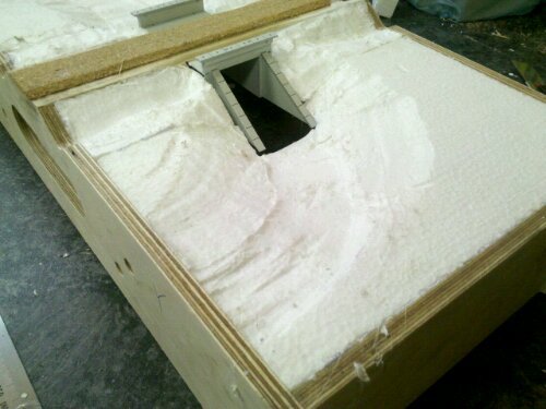 A 40mm-es oldal közepébe hossz irányban, a duplázott végtől 13,5cm-től kezdődően a másik végtől 10cm-ig egy 8mm széles teljes mélységű bevágás készítettem egy lapszabászatban.