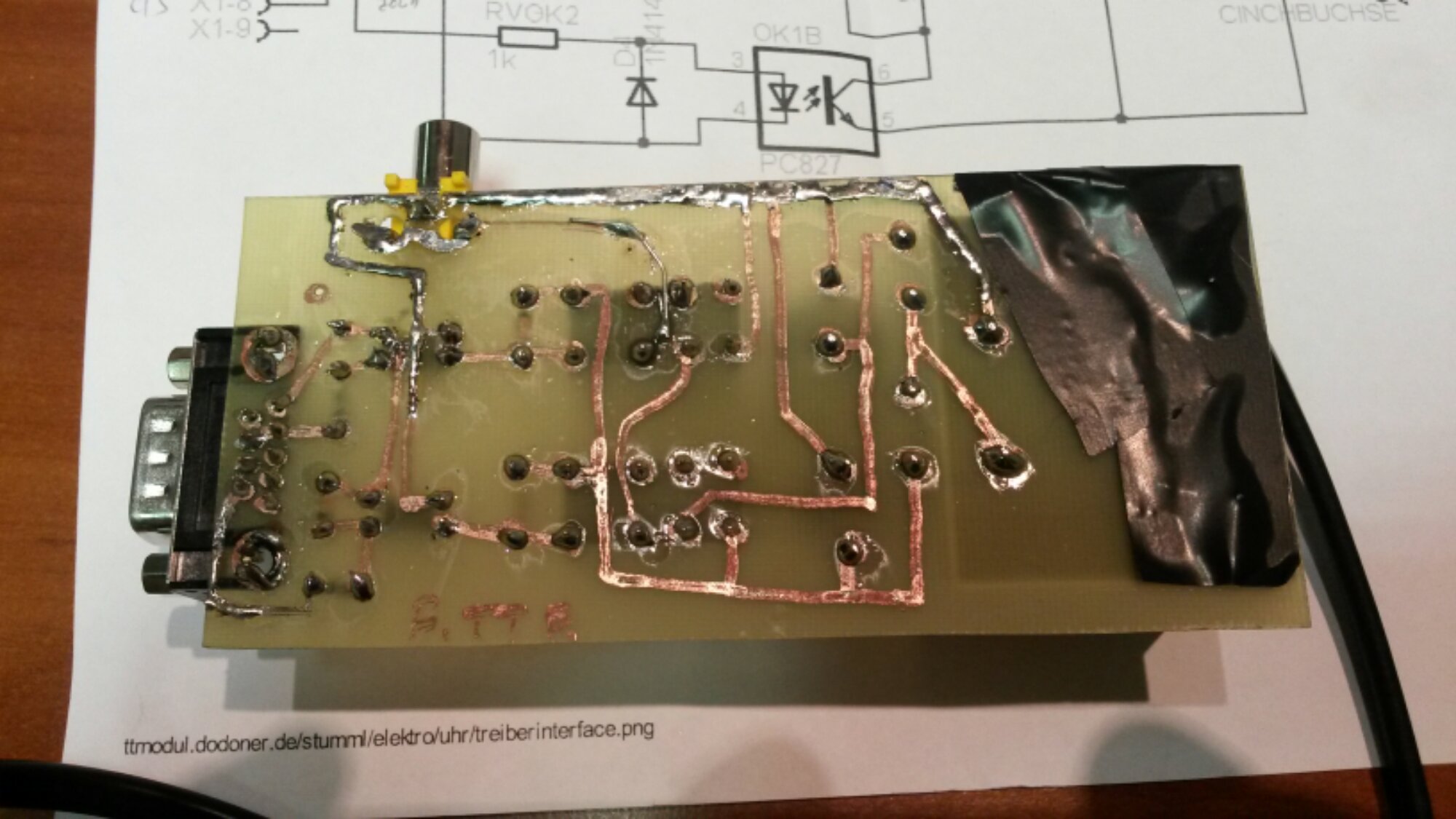A vágányokat a sablonokkal kijelölt nyomvonalra rögzítettem, a végeket az apró rézcsavarokkal rögzített Digitalzentrale-os nyákokhoz forrasztottam. Ez nem ment simán még a az előzőleg elkészített, derékszögbe állító sablonnal se, mivel a külső oldal forrasztása után el kellett vennem a sablont, hogy hozzáférjek a belső oldalakhoz, ám ekkor némelyik sínszál elengedte magát. Azt tapasztaltam, hogy a Tillig barnított sínszál elég nehezen forrasztható még forrasztó olaj alkalmazása mellett is.